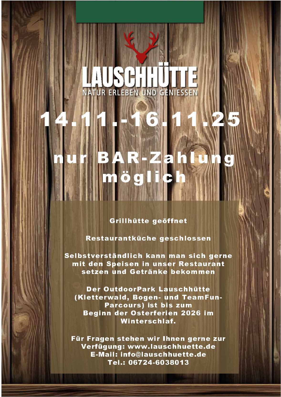 Die Lauschhütte bietet in ihren zünftig und stilvoll eingerichteten Gasträumen Platz für bis zu 100 Personen. Des weiteren stehen zwei Terrassen, der Biergarten und Jurtenzelte auf der Eventwiese oder am Waldrand für bis zu 150 Personen zur Verfügung.