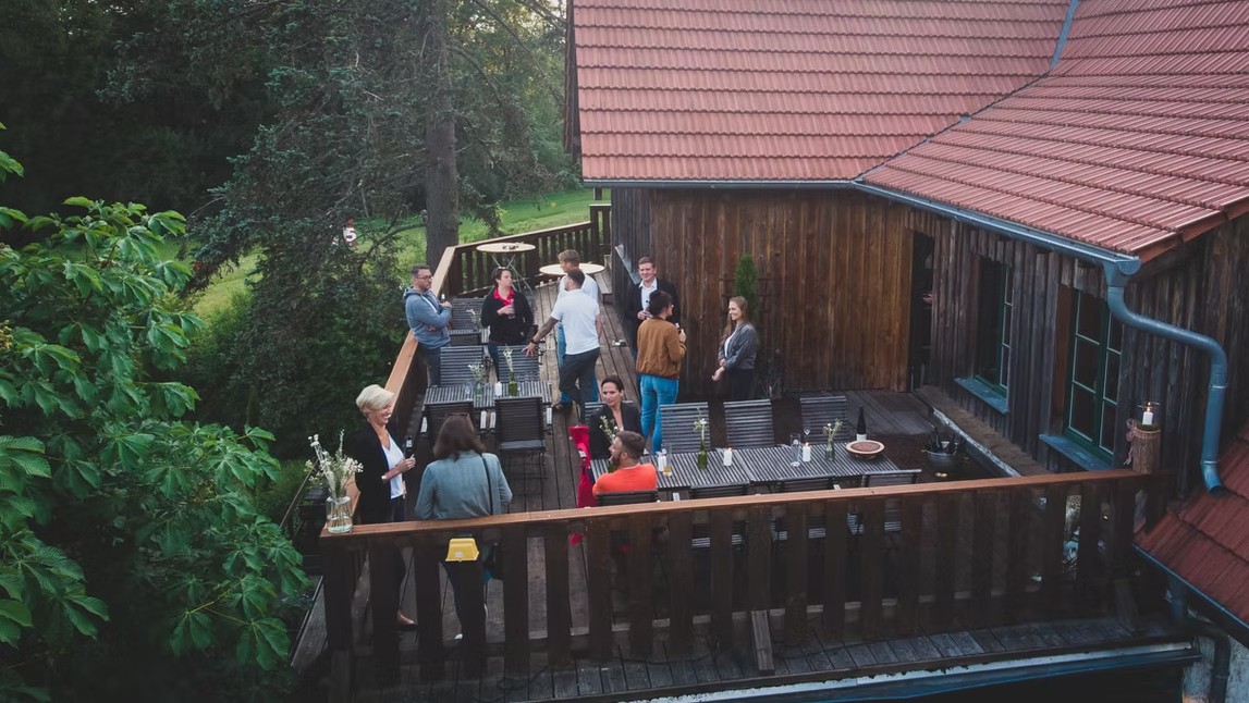 Des Weiteren stehen zwei Terrassen, der Biergarten und Jurtenzelte auf der Event-Wiese für bis zu 200 Personen zur Verfügung.